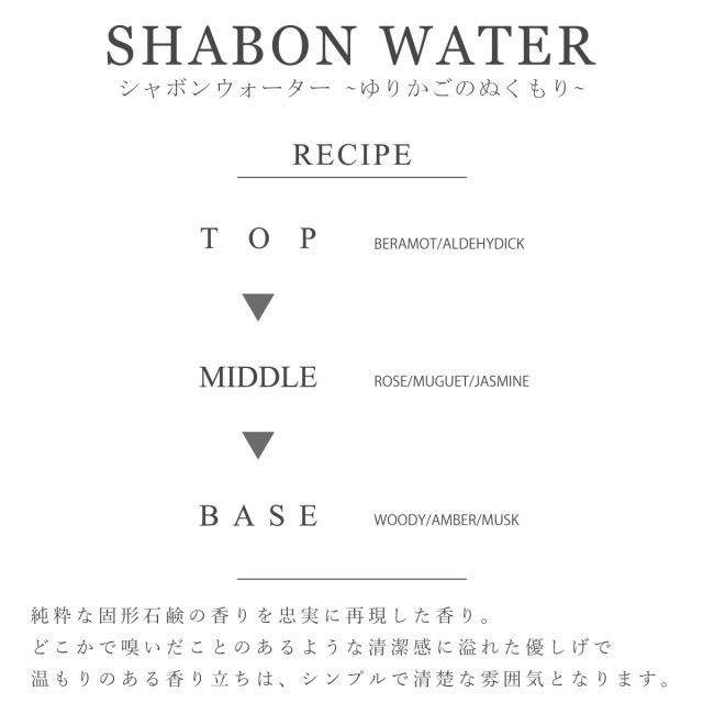 ◆商品名:シャボンウォーター (ゆりかごのぬくもり)
