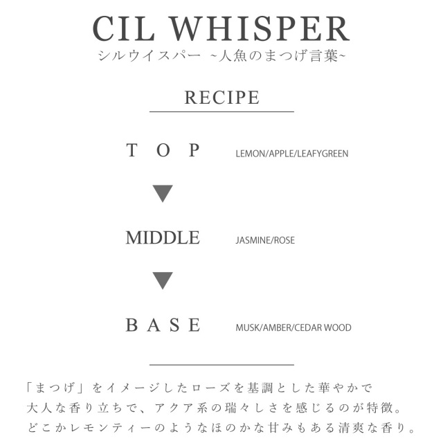 「ふせまつげ」からインスピレーションされた香り「シル・ウィスパー」キーワードは「人魚のまつげ言葉」